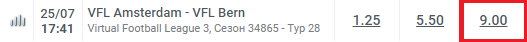 Заработок заключается в том , что мы ставим на виртуальный футбол.Где матч идёт примерно 3 минуты. Минимальная ставка 5 рублей. Выигрывать там просто. Ищем примерно такой коэффициент
